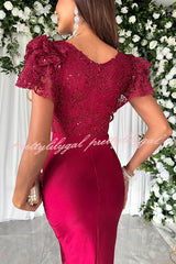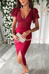 - Beautiful lace and lining on the upper add subtlety, while the lower body is made from flexible, elegant fabric with a refined sheen, ensuring comfort and unique style. The double-sleeved dress adds a touch of romance and elegance. It fits perfectly, flatters your figure and makes you feel special at weddings, baptisms, communions and other important moments. Precise workmanship ensures you will shine at every celebration. Add a little magic to your wardrobe with this stunning dress.