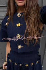 Custom Look Denim Unique Metal Pattern Buttons Slit Half Sleeve Crop Jacket