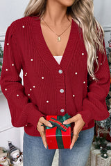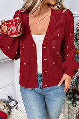 Christmas Pearl Embellished Casual V-Neck Knitted Cardigan