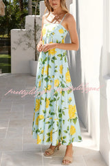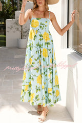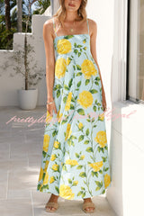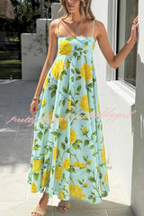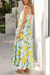 Floral Print Square Neck Sleeveless Casual Vacation Maxi Dress