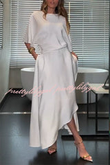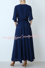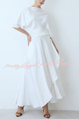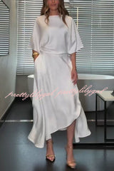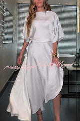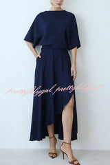 Modern and Elegant Satin Half Wide Sleeve Wrap Style Pocket Slit Loose Maxi Dress