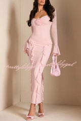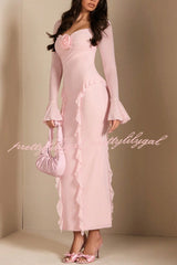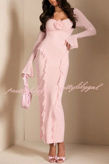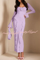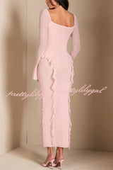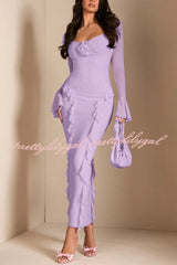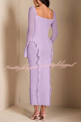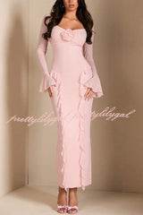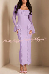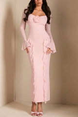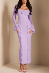 Solid Color Long-sleeved Ruffled Slim-fit Maxi Dress