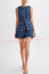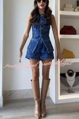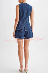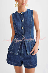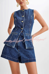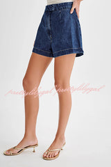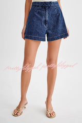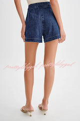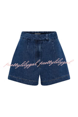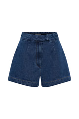 - These high-waisted shorts feature a waistband for a comfortable fit and a functional centre front fly with button closure. Designed with a relaxed fit hem and back darts, they offer both style and ease of movement. Perfect for casual outings or beach days, these denim shorts are versatile and effortlessly chic..
