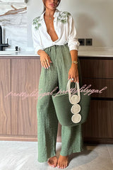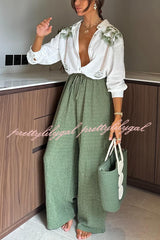 Tropical Calling Linen Blend Unique Print Loose Blouse and Elastic Waist Pocket Pants Set