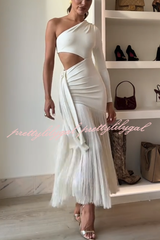 Amazing Type One Shoulder Cutout Drape Tassle Trim Stretch Maxi Dress