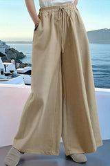 Solid Color Elastic High Waist Pocket Loose Wide Leg Pants