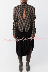 - This top features an oversized, relaxed silhouette with a draped V-neckline. A perfect update on the button-down style, it features exaggerated shoulders, an angled hem, and cut sides.Our distinctive clothing will add instant style to your wardrobe.
