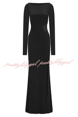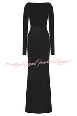 Fashion Long-sleeved Slim Sexy Hollow Slit Maxi Dress