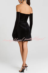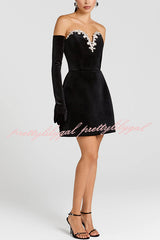 Ines Luxurious Velvet Jewel-encrusted Sweetheart Off Shoulder Neck Tulip Stretch Mini Dress