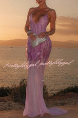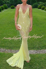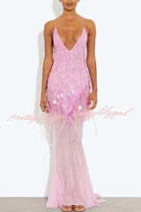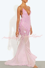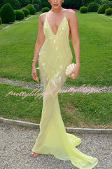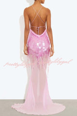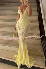 Perfect Night Sequin Embroidery Backless Drape Tulle Hem Slip Maxi Dress