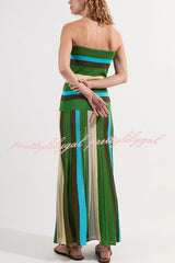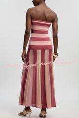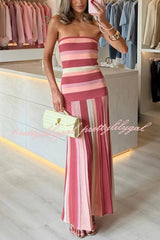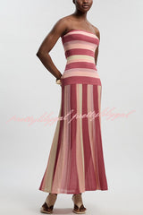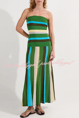 A Splash of Color Knit Color-Block Striped Off Shoulder Stretch Maxi Dress