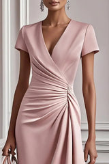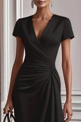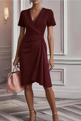 Stylish V-neck Short-sleeved Pleated Waist Elegant Mini Dress