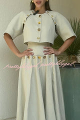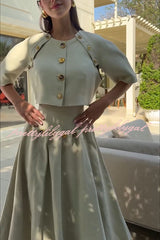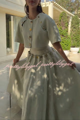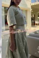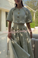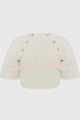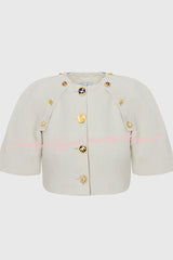 Custom Look Linen Blend Unique Metal Pattern Buttons Slit Half Sleeve Crop Jacket