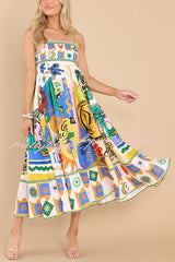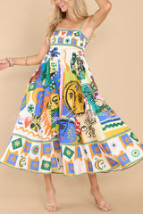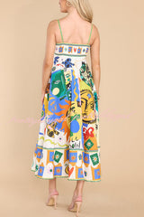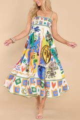 Joyful Glow Goddess Linen Blend Unique Print Pocketed Smocked Back Midi Dress