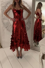 Party Tips Sequin Irregular Round Tassels Hem Back Cutout Tank Maxi Dress