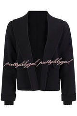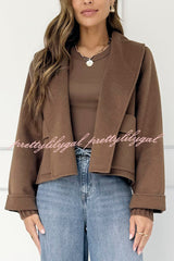 Comfortable Season Shawl Collar Open-front Long Sleeve Flap Pockets Crop Coat