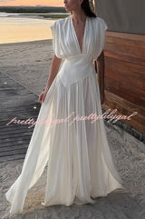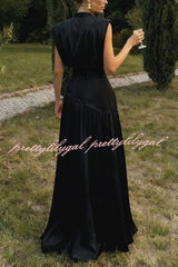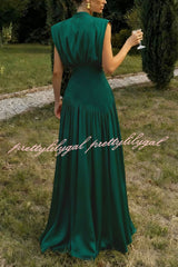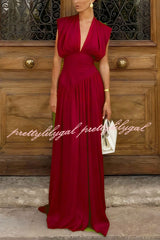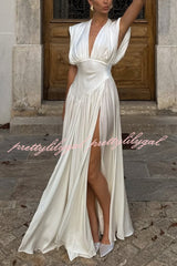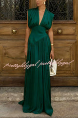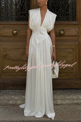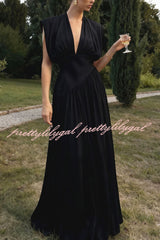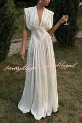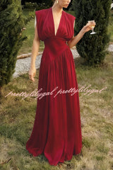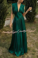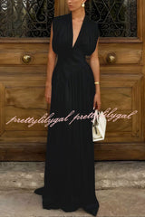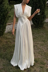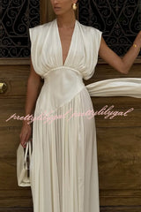 Elegant V-neck Sleeveless Fitted Waist High Slit Vacation Maxi Dress