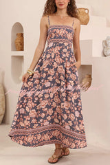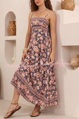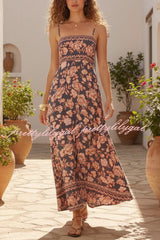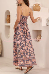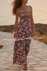 Floral Print Sleeveless Square Neck Backless Casual Vacation Maxi Dress