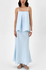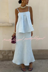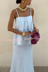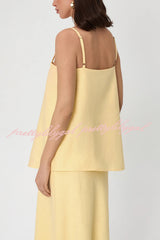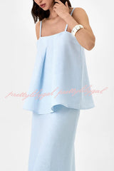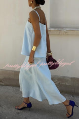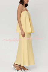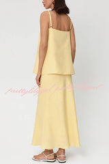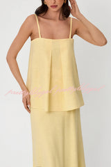 Linen Blend Loose Square Neck Camisole Top and Elegant Resort Maxi Skirt Set