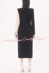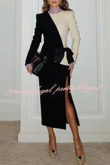 Love Unfolded Contrast Color Side Bow Tie-up Long Sleeve Slit Midi Dress