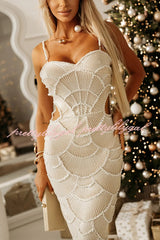Own It Pearl Sequin Embellished Sexy Backless Cutout Strap Maxi Dress