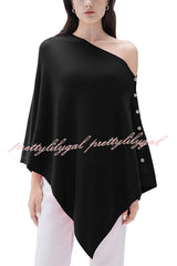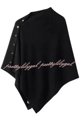 Women Cashmere Knit Shrug Bolero Side Button Detail Lightweight Shawl Poncho
