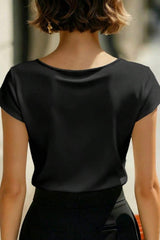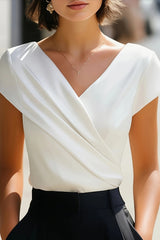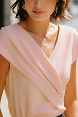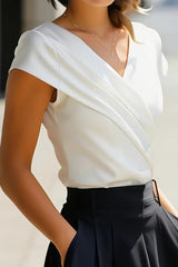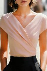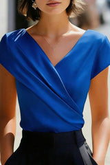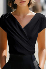 Solid Color Crossover V-neck Short-sleeved Slim-fit Casual Top