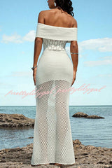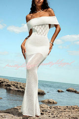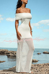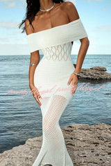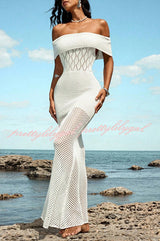 Solid Color Knit Openwork Off-shoulder Slim-fit Cover-up Maxi Dress