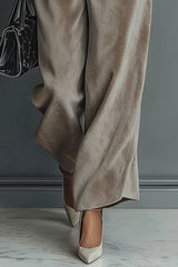 Stylish Velvet Turtleneck Long-sleeved Top and Casual Pocket Wide-leg Pants Set
