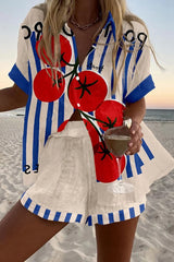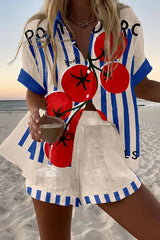 Tomato Print Loose Button Elastic Waist Shorts Set