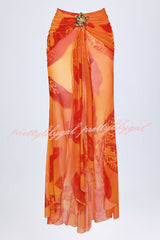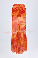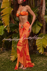 Unique Printed Metallic Floral Halter Top and Holiday Pleated Slit Maxi Skirt Set
