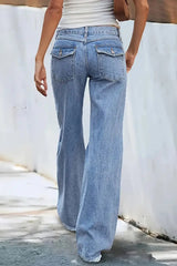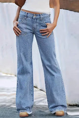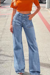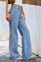 Stylish Loose-fitting Pocket Casual Frayed Wide-leg Jeans