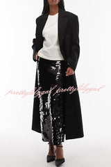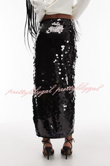 Chic Holiday Look Large Sequins High Rise Zipper Waist Slit Maxi Skirt