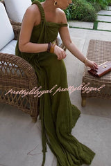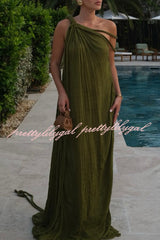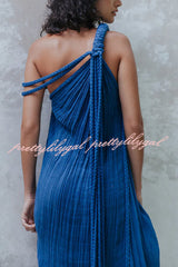 - This one-shoulder woven halter top design is designed to showcase individuality! The soft, draping weave on the other shoulder creates a truly iconic asymmetrical beauty. The layered decorative weave can also be styled to create various belt effects. It allows you to exude captivating charm with every move. The asymmetrical hemline, subtly revealing glimpses, is unforgettable!Our distinctive clothing will add instant style to your wardrobe.