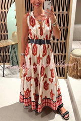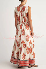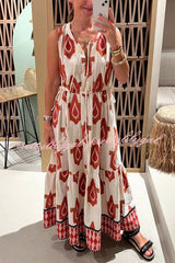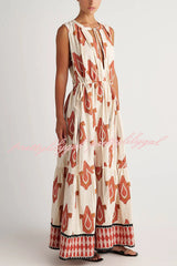 Unique Printed Round Neck Tie Sleeveless Holiday Maxi Dress