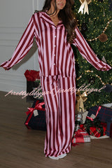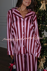 Courtney Satin Colorblock Striped Loose Shirt and Elastic Waist Pocketed Pajama Set