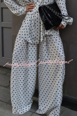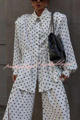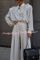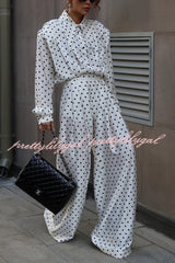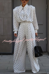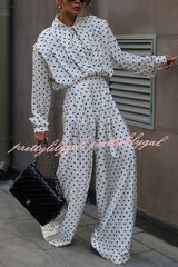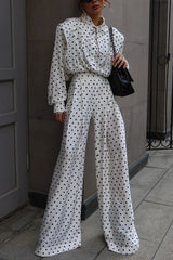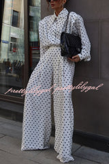 Polka Dot Print Collared Long-sleeved Loose-fitting Shirt and Casual High-waisted Wide-leg Pants Suit