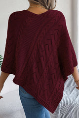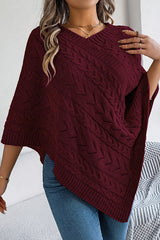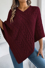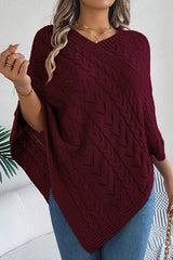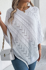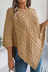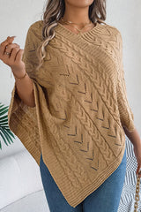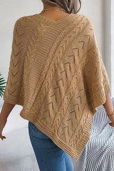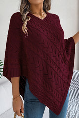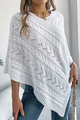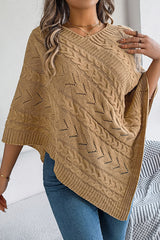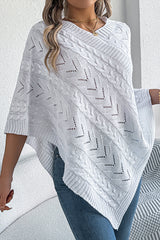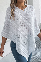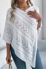 Solid Color Openwork Loose V-neck Knitted Casual Cape