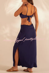 Metal Shell Straps Elastic Bikini and Slit Cover-up Dress Three-piece Set