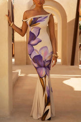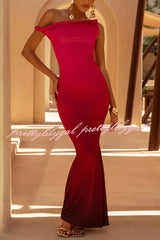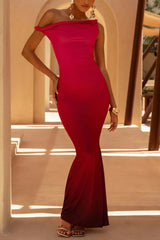 Stylish Off-shoulder Fitted Elegant Fishtail Maxi Dress