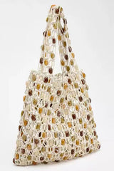 This is an elegant woven beaded tote bag with a large capacity, perfect for everyday use, commuting, or going to school.