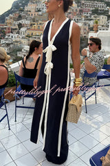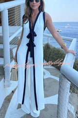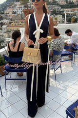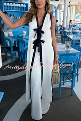 Beach Day Colorblock Bow Detail Slit Midi Top and Elastic Waist Loose Pants Set