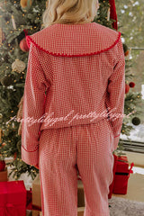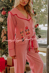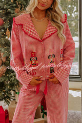 Nutcracker Charm Embroidered Gingham Loose Shirt and Elastic Waist Pajama Set