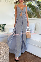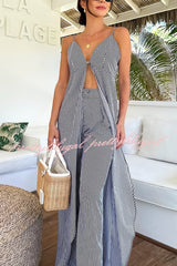Striped Print Sleeveless Long Casual Top and Loose Straight Pants Set