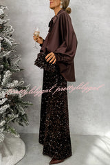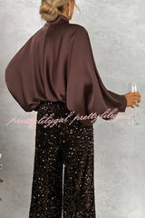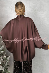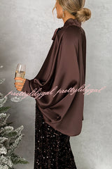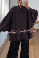 Chic and Merry Satin Bow Neck Batwing Sleeve Loose-fitting Blouse