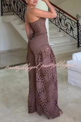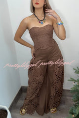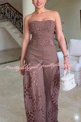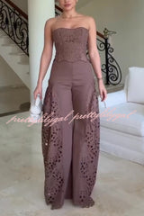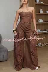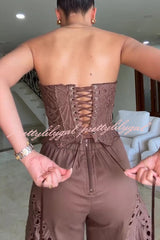 Lily Embroidered Cutout Lace Back Lace-up Tank and High Rise Wide Leg Pants Set