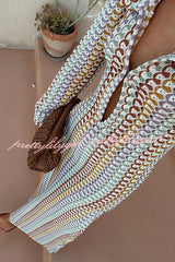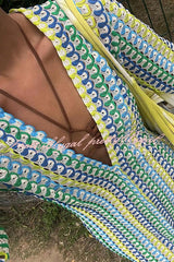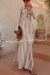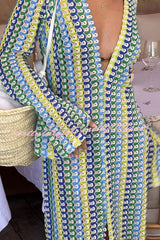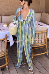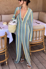 Bondi Beach Knit Colorful Wave Print Long Sleeve Vacation Maxi Dress