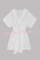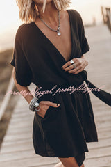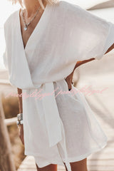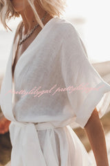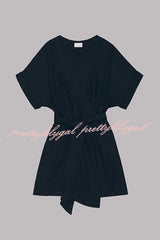 - Kimono dress in black linen with a belt and hidden pockets on the sides.Our distinctive clothing will add instant style to your wardrobe..