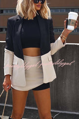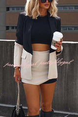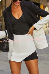 Enhance Look Colorblock Long Sleeve Pocket Lapel Blazer and And Mid Rise Mini Skort Set