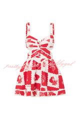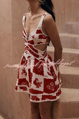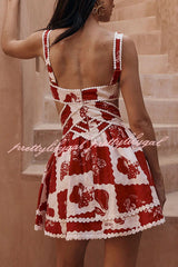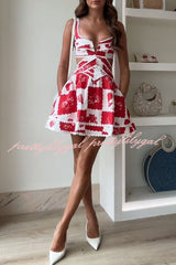 - Introducing our exclusive Visione print, inspired by the golden sun on a European landscape. The Como Dress features off shoulder puff sleeves, V at centre bust, ric rac trims and a flared mini skirt.